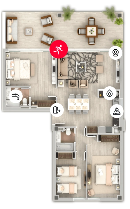 Беспроводной датчик движения с функцией фотофиксации реагирует на тепловое излучение движущегося человека и отправляет сигнал тревоги вместе с фото о событии на Центральную станцию мониторинга. Снимки доступны оператору только по тревоге - они позволяют определить точную причину срабатывания и дать нужные инструкции группе быстрого реагирования. Датчик делает фотоснимки при любом освещении, даже ночью. Умное устройство не реагирует на движение домашних питомцев весом до 25 кг, поэтому их перемещение по дому не станет причиной ложной тревоги.